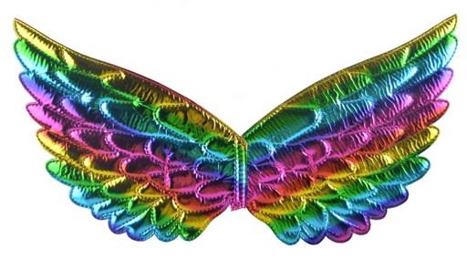 - metaliczne tęczowe skrzydełka zakładane na gumeczki