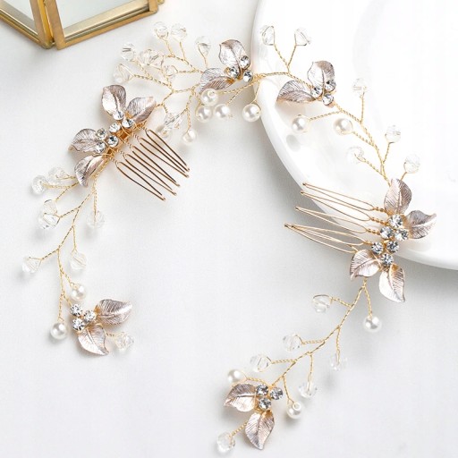 ŚLUBNA OZDOBA DO WŁOSÓW w kolorze złotym