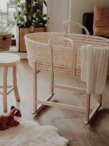 Kołyska została zaprojektowana do użytkowania koszy Mojżesza marki ahojbaby: