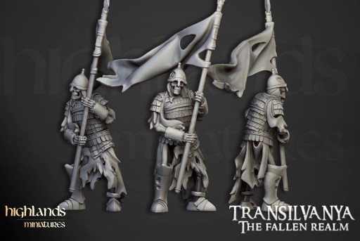 Skeleton with Banner - Highlands Miniatures - Usługa Druku 3D Figurki do RPG lub Gier Bitewnych