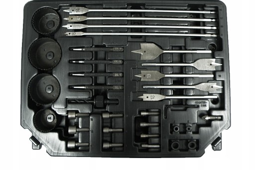 ZESTAW WIERTEŁ DO DREWNA, METALU I BETONU, BITÓW, KLUCZY NASADOWYCH, OTWORNIC, FREZÓW DO OTWORÓW