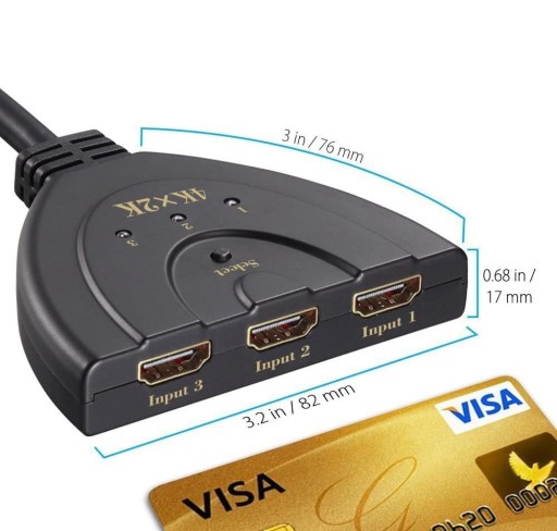 Przełącznik / Switch umożliwia podłączenie 3 urządzeń do jednego monitora lub telewizora. Wybór, które urządzenie jest aktywne i korzysta aktualnie z monitora - następuje ręcznie.