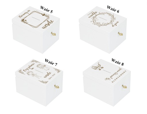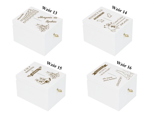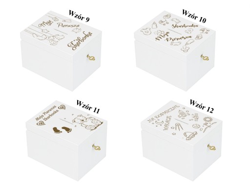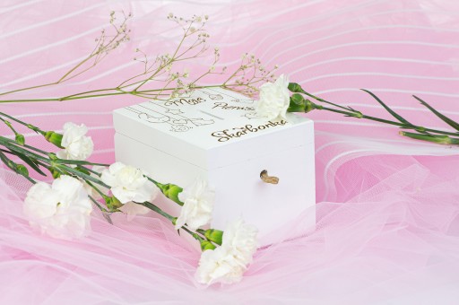 DREWNIANA BIAŁA SKARBONKA Z GRAWEREM ŚLUB CHRZEST