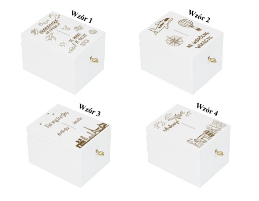 - Drewnianą skarbonkę w białym kolorze.