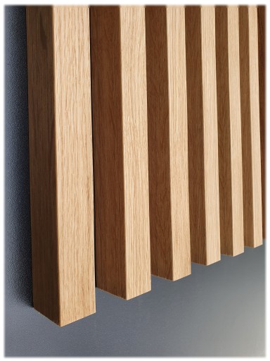 Lamele dekoracyjne wykonywane są z płyty MDF posiadającej Atest Higieniczności okleinowane naturalną okleiną Dębową.