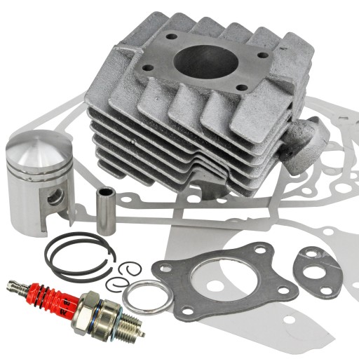 Komplet cylindra do silników kwadratowych z skrzynią dwubiegową, z tłokiem, sworzniem, zabezpieczeniami sworznia oraz uszczelkami do Romet II, Motorynka, Kadet