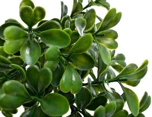 - Błyszczące i lekko cieniowane liście imitują żywe bukszpanowe listki.