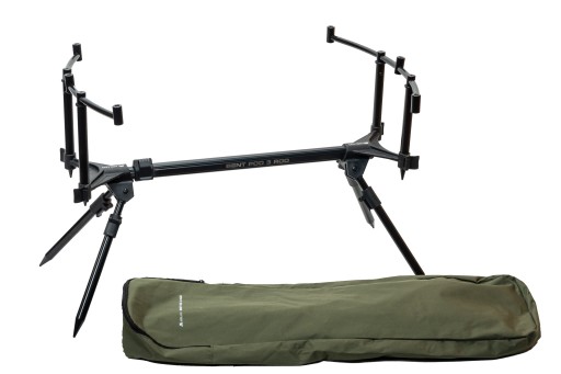 Uniwersalny rod pod dla każdego, kto szuka stabilnego statywu, z możliwością ułożenia do 3 wędek jednocześnie. Kąt ustawienia wędek można regulować na kilka sposobów, między innymi za pośrednictwem regulacji buzz barów, długości nóżek, oraz długości stojaka, co pozwala dostosować się do każdych warunków panujących na łowisku. Rod Pod z nowoczesnymi, zakrzywionymi buzz barami na 3 wędki. Zastosowane nowatorskie rozwiązanie gwarantuje wystarczającą ilość miejsca na duże kołowrotki oraz rozszerza szczytówki wędek zwiększając zakres czułości zestawów.