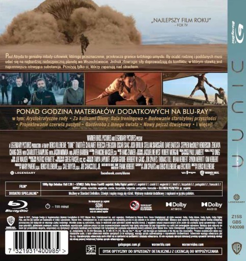 Hit kinowy 2021 roku! Wizualno-muzyczne arcydzieło z gwiazdorską obsadą. Diuna to widowiskowa ekranizacja kultowej powieści Franka Herberta przedstawiająca dzieje krainy Arrakis, zwanej Diuną. Z rozkazu Padyszacha Imperatora planetę przejmują Atrydzi, zaciekli wrogowie władających nią dotychczas Harkonnenów. Zwycięstwo księcia Leto Atrydy jest jednak pozorne – przejęcie planety zostało bowiem ukartowane.