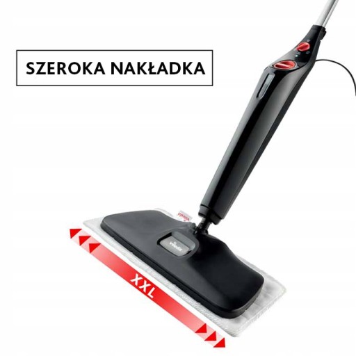 Mop Steam Plus XXL wyposażony jest w nakładkę o szerokości 40 cm. Mop XXL idealnie nadaje się do czyszczenia dużych powierzchni.