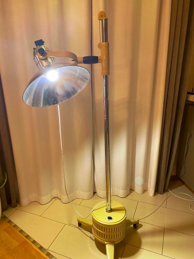Lampa medyczna stojąca z lat 70 XX wieku. Regulowana wysokość, industrialna dla indywidualnego i specyficznego klienta z bujną wyobraźnią. Ta lampa to przedmiot jednostkowy i osobliwy. Stan zachowania – bardzo dobry po kompletnej renowacji, gotowa do użytku. Niepowtarzalny projekt, doskonale sprawdzi się jako lampa stojąca w odpowiednim miejscu pomieszczenia urządzonego z charakterem. Lampa bardzo solidnie wykonana, nowa instalacja w technologii LED w komplecie żarówka. Prezentuje się niezwykle oryginalnie, będzie efektowną ale i praktyczną ozdobą każdego wnętrza.