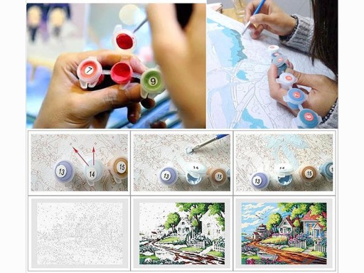 Zapewne znasz już tą zabawę z wczesnych klas podstawówki, to nic innego niż kolorowanka z przypisanymi do numerków kolorami. Zestaw który oferujemy, działa na podobnej zasadzie. Na obrazie znajdują się pola z przypisanymi numerami, wystarczy odszukać odpowiednie pola i pokolorować je przypisanym kolorem z tubki, za pomocą pędzelka. Efekty tej zabawy są spektakularne! Nawet jeżeli nie potrafisz dobrze rysować, jesteś w stanie pokolorować obraz jak profesjonalista. To wszystko dzięki specjalnie przygotowanemu tłu, które posiada pola z przeznaczeniem na konkretny kolor.