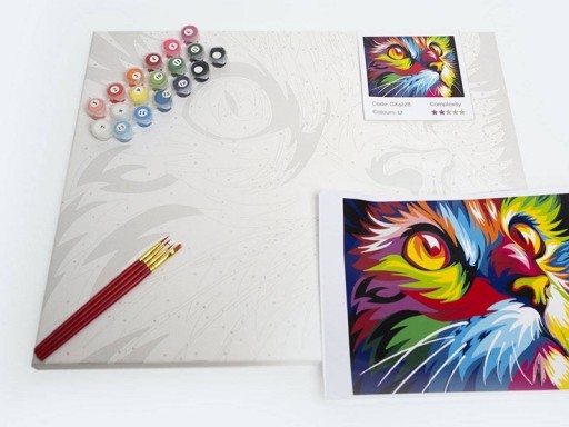 Zapewne znasz już tą zabawę z wczesnych klas podstawówki, to nic innego niż kolorowanka z przypisanymi do numerków kolorami. Zestaw który oferujemy, działa na podobnej zasadzie. Na obrazie znajdują się pola z przypisanymi numerami, wystarczy odszukać odpowiednie pola i pokolorować je przypisanym kolorem z tubki, za pomocą pędzelka. Efekty tej zabawy są spektakularne! Nawet jeżeli nie potrafisz dobrze rysować, jesteś w stanie pokolorować obraz jak profesjonalista. To wszystko dzięki specjalnie przygotowanemu tłu, które posiada pola z przeznaczeniem na konkretny kolor.
