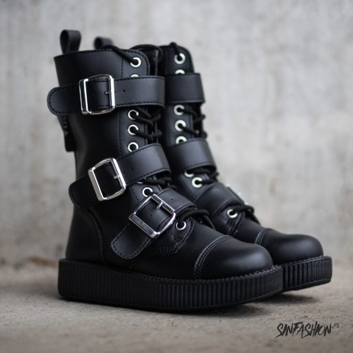 - 100% wegan skóra!- sznurowane + zapinane na klamry- wysokość platformy 4cm + 25cm wysokosc buta