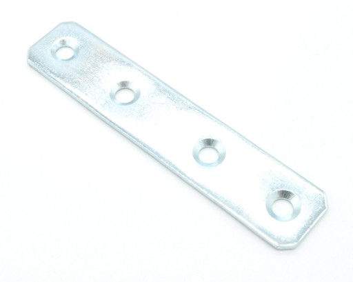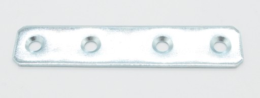 Opis: łącznik wykonany jest z metalu ocynkowanego (ocynk srebrny). Łącznik ma 4 stożkowo fazowane otwory pod wkręty. Łączniki znajdują zastosowanie w różnych miejscach, jednak głównie służą do połączenia np.: szafek wiszących (łącznik przykręcony na górze szafek), blatów kuchennych (łącznik przykręcony od dołu blatu) zapobiegając rozsuwaniu się mebli w trakcie intensywnej eksploatacji.