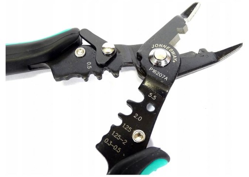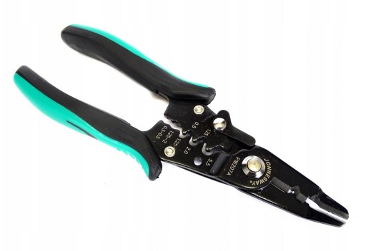 Szczypce umożliwiają cięcie przewodów 30-12 AWG (0.25-2.0mm), ściąganie izolacji 30-10 AWG (0.05-5.5mm2) oraz zaciskanie złącz konektorowych nieizolowanych AWG: 22-18/16-14/12-10.