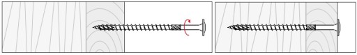 - Wkręty należy wkręcać bezpośrednio do podłoża drewnianego bez wcześniejszego wywiercenia otworów.