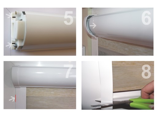 - Można oderwać taśmę przytrzymującą materiał. Dla ułatwienia montażu proszę nie rozwijać rolki z tkaniną.