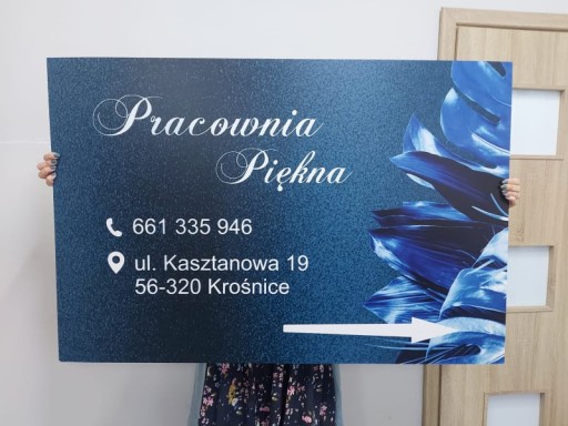 Tabliczka PCV o grubości 5 mm z nadrukiem bezpośrednim UV odpornym na warunki atmosferyczne w rozmiarze 80x120cm z dowolną grafiką.
