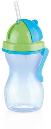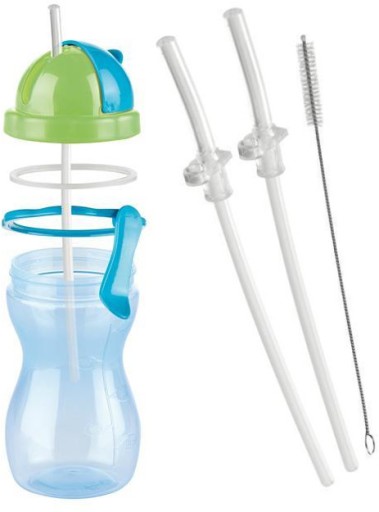 Butelka dziecięca z elastyczną silikonową słomką i uszczelką , miarką do łatwego odmierzania i klipsem do zawieszenia