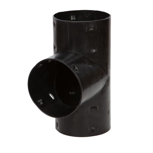 Trójnik drenarski umożliwia równoległe połączenie dwóch odcinków rur o średnicy 100 mm. Oraz dołączenie pod kątem 90 st. trzeciej rury o średnicy 100 mm. Wykonany z tworzywa sztucznego. Stosowany w systemach kanalizacyjnych i instalacji do wody deszczowej.