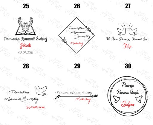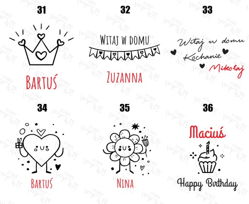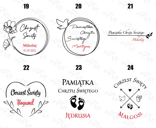 Oferujemy także możliwość zastosowania Twojej własnej grafiki! Prześlij swoją grafikę w formacie .ai, .cdr., .eps, .pdf. Istnieje możliwość umieszczenia niewielkich grafik uzupełniających do przesyłanych treści np. kształty florystyczne, obramowania, grafiki okolicznościowe np. ślubne, urodzinowe itp.