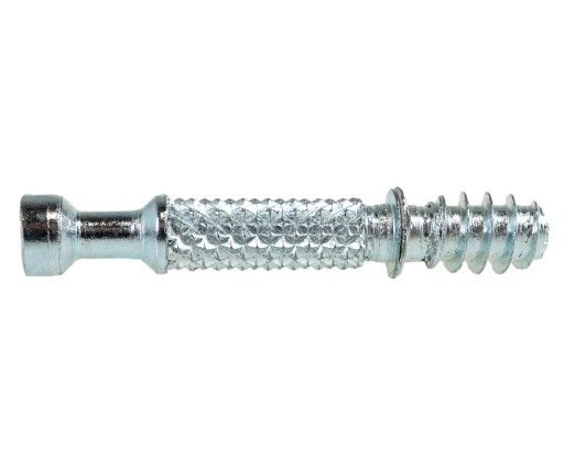 Montaż dokonuje się poprzez wywiercenie otworu Ø 15 mm, w płycie którą chcemy połączyć oraz otworu na trzpień o średnicy 7,5 mm, następnie dokonujemy montażu trzpienia w dolnej części bezpośrednio w płytę lub drewno dla gwintu euro, dla gwintu M6 należy dokupić mufę tworzywową lub metalową, dla trzpienia wbijanego wciskamy w otwór fi 8. Po montażu trzpienia zakładamy mimośród w otwór fi 15 i dokonujemy jego przekręcenia w celu złączenia 2 elementów.