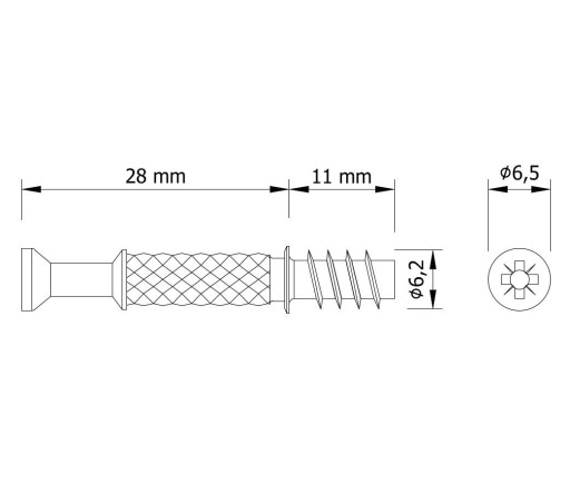 ROZMIAR: GWINT EURO, DŁUGOŚĆ 28 MM