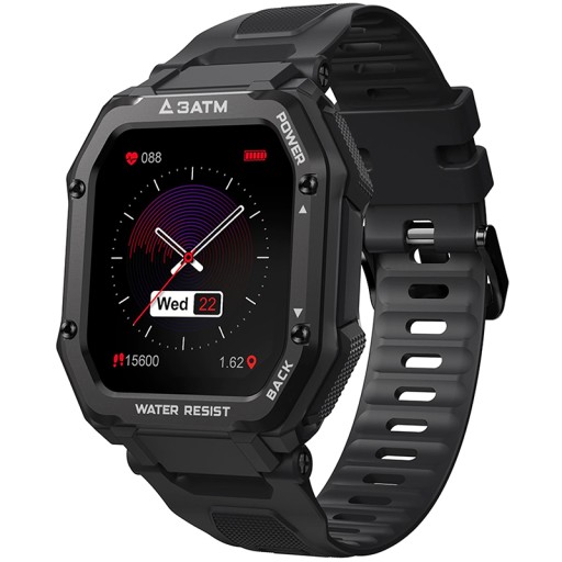 Smartwatch C16 to sportowy zegarek, który ma wytrzymałą konstrukcję o przemyślanym wyglądzie. Po prawej stronie obudowy znajdują się dwa przyciski - jeden służy do włączania / wyłączania zegarka, natomiast drugi odpowiada za powrót do poprzedniej funkcji.