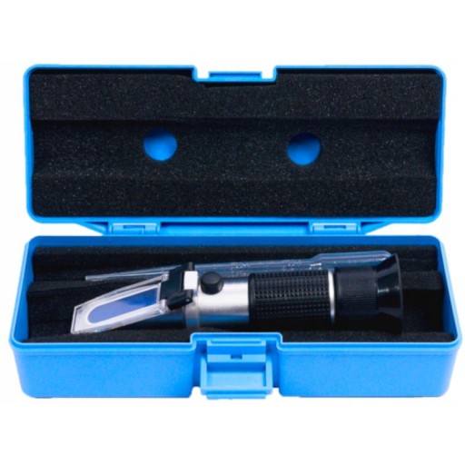 Profesjonalny refraktometr do pomiarów płynów eksploatacyjnych samochodów osobowych, ciężarowych i autobusów. Przeznaczony jest do określania temperatury zamarzania płynu do spryskiwaczy, płynu chłodzącego glikolu propylenowego i glikolu etylowego. Podaje również zakres gęstości elektrolitu. Zestaw zawiera pipetkę do pobierania próbek oraz szmatkę do czyszczenia. Wszystko zapakowane w poręczne pudełko.