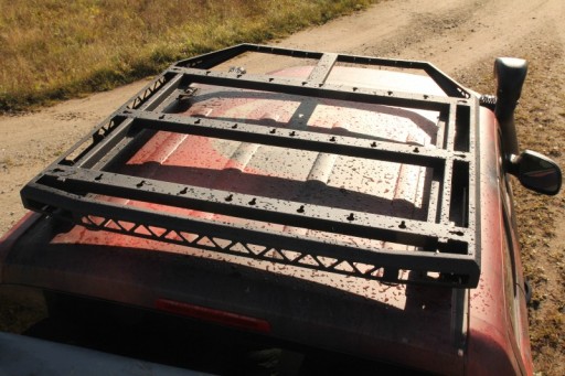 Platforma jest płaska z góry i przystosowana do montażu namiotów dachowych. Na górnej płaszczyźnie bagażnik offroad posiada otwory do łatwego montażu siatek bagażowych oraz przykręcenia dowolnych mocowań indywidualnych.