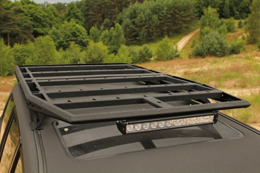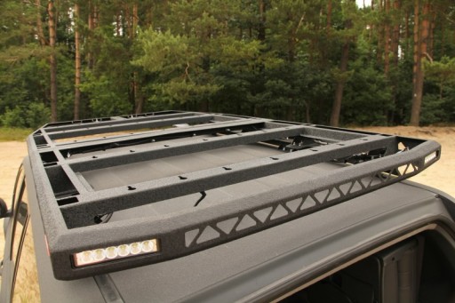 Platforma składa się z dwóch części, jest płaska z góry i przystosowana do montażu namiotów dachowych. Na górnej płaszczyźnie bagażnik offroad posiada otwory do łatwego montażu siatek bagażowych oraz przykręcenia dowolnych mocowań indywidualnych.