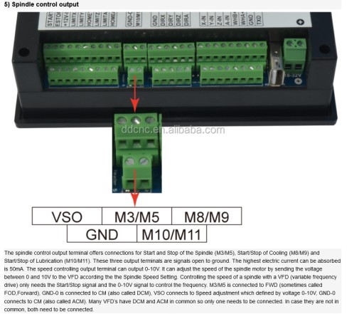 3) - Interfejs wyjściowy portu sterowania wrzecionem 0-10 V, (może być modyfikowany jako wyjście PWM)