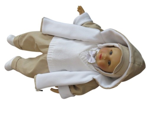 - KURTECZKA Z KAPTURKIEM - USZYTA Z TKANINY SZTRUKSOWEJ ( BEŻOWA ), DODATKOWO PODSZYTA CIEPŁYM POLAREM ( GRUBOŚĆ POLARU DOSTOSOWANA JEST DO PORY ROKU, WIOSNA/JESIEŃ CIENKI POLAR, ZAŚ ZIMĄ GRUBY POLAR ). KURTKA ZAPINANA NA ZAMEK, ISTNIEJE MOŻLIWOŚĆ REGULACJI RĘKAWKÓW.