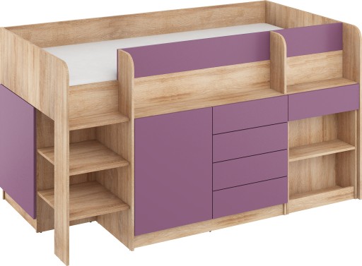 Кровать-мезонин с письменным столом SMILE P sonoma фиолетовый