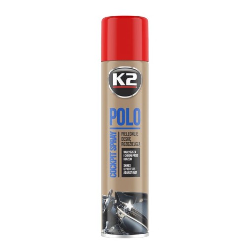 K2 POLO COCKPIT to spray do pielęgnacji i konserwacji deski rozdzielczej. Zawiera specjalne nanocząsteczki, dzięki którym w łatwy i szybki sposób zabezpieczy cały kokpit, przywróci głęboką barwę oraz wyrazistą fakturę czyszczonych elementów.