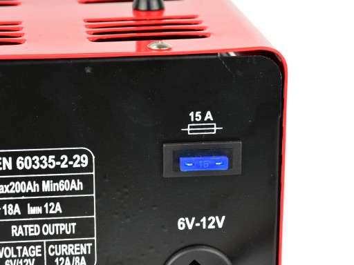 - Prąd ładowania: 12A, 6A, 2A - regulowane przełącznikiem