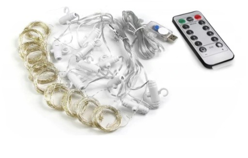 Kurtyna świetlna jest zaopatrzona w bezprzewodowy pilot zdalnego sterowania, dlatego od teraz nie będziesz musiał podchodzić do lampek LED, aby je ustawić. Dzięki pilotowi obsługa kurtyny będzie bardzo komfortowa i przyjemna.