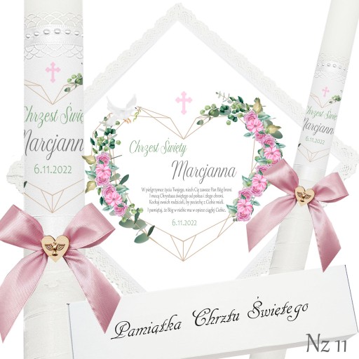 2.imię dziecka lub dwa imiona oraz opcjonalnie datę chrztu(UWAGA! imiona nie są odmieniane jeśli życzą sobie Państwo odmiany należy wskazać to w wiadomości jak i również informację w przypadku dwuznacznych imion czy to chłopiec czy dziewczynka w przeciwnym przypadku reklamacje nie będą uznawane)