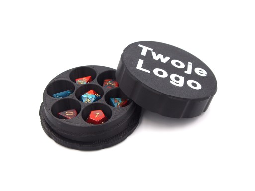 - Pojemnik mieści 7 kości dzięki czemu już nigdy nie zgubisz żadnej z nich.