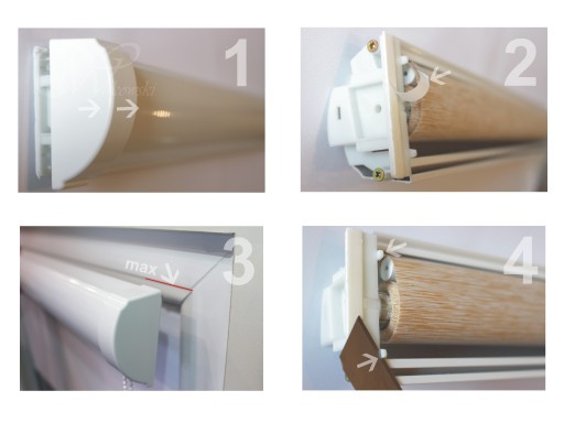 UWAGA nie montujemy rolet na ramie okna, tak jak w niektórych rozwiązaniach u konkurencji. Jeżeli umieszczone z tyłu kasety wypustki po przyłożeniu obudowy do listew przyszybowych będą przeszkadzały należy je obciąć nożykiem (zdj.4)