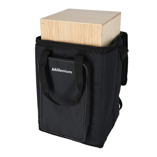 Pokrowiec na cajon Millenium Classic z komorą główną oraz dodatkową kieszenią na akcesoria.