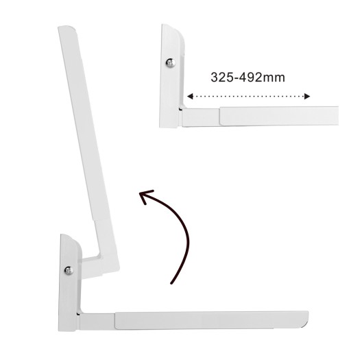 - Uchwyt składa się z dwóch solidnych ramion w kształcie litery L o regulowanej długości