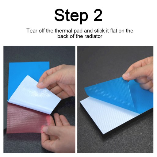 Krok 2:Oderwij osłonę podkładki termicznej i przyklej ją płasko z tyłu radiatora.