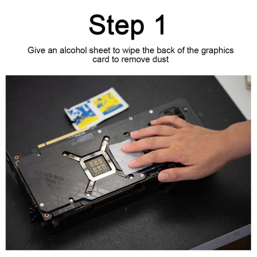 Krok 1:Użyj alkoholu, aby wytrzeć tył karty graficznej oraz aby usunąć kurz.