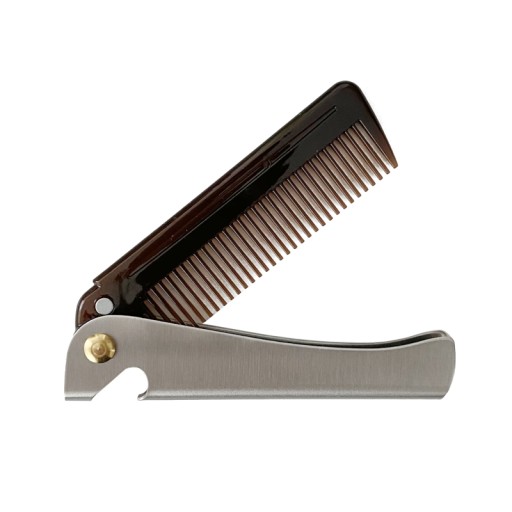 Kieszonkowy grzebień do stylizacji brody i wąsów. Dwufunkcyjny - może służyć jako otwieracz do butelek.