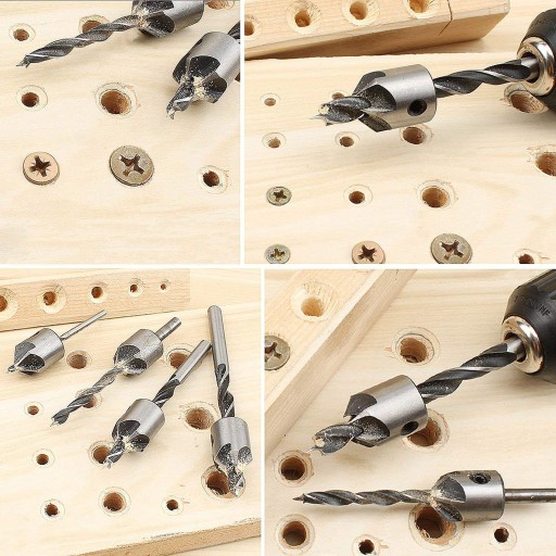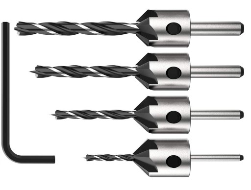 WIERTŁA DO DREWNA Z POGŁĘBIACZEM 4 EL + KLUCZYK