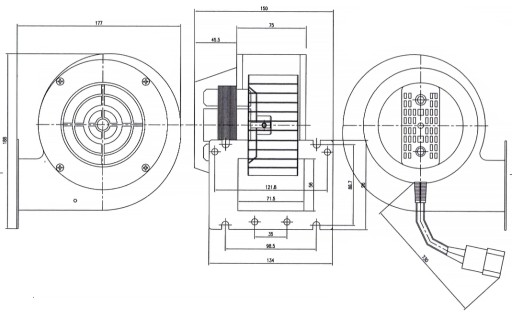 Wentylator nadmuchowy NWS-75 stosuje się do kotłów C.O. na paliwa stałe. Stalowa obudowa wentylatora pokryta jest lakierem proszkowym. Silnik elektryczny przymocowany jest do obudowy wkrętami M4. Silnik przysłonięty jest osłoną wykonaną z tworzywa, która stanowi zabezpieczenie przed porażeniem. Turbinka metalowa wentylatora nadmuchowego jest zamocowana na wałku silnika elektrycznego. Podstawowym przeznaczeniem wentylatora nadmuchowego NWS-75 jest nadmuchiwanie powietrza do kotłów C.O. miałowych i węglowych do 45 kW.