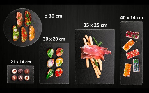 Luksusowa płyta doskonała do serwowania dań i deserów itp. Płyta została wykonana z naturalnego kamienia łupkowego, posiada nóżki antypoślizgowe