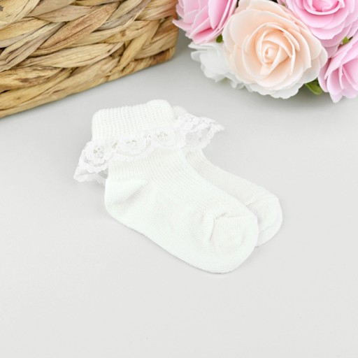 Ecru skarpetki z ozdobną koronką oraz kokardką